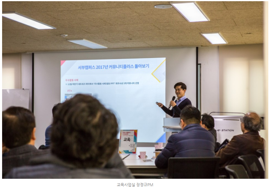 교육사업실에서 커뮤니티플러스와 단체설립지원 사업을 담당하고 있는 장정규 PM이  직접 <커뮤니티플러스>에 대한 소개를 시작했다.
