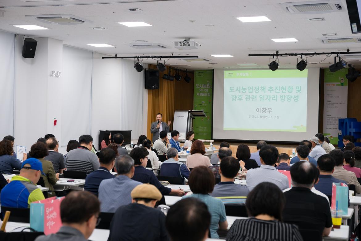 먼저 주제발표에 나선 이창우 한국도시농업연구소장은 도시농업정책 추진 방향과 향후 일자리 방향성에 관해 이야기했다.
