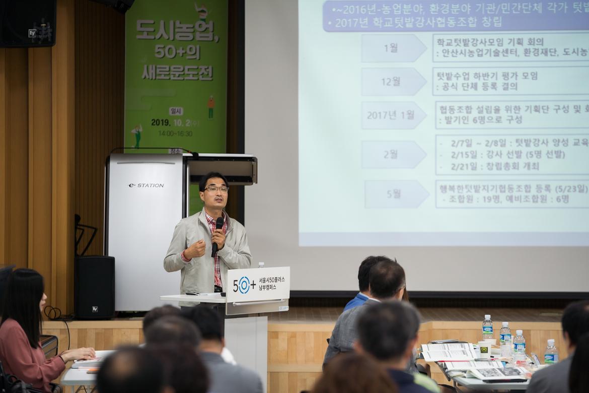 김영대 서울시50플러스재단 대표이사가 격려사를 하였고 서동혁 서울시50플러스 남부캠퍼스 일활동지원팀장이 50+세대의 일 활동과 도시농업의 연계 방향을 소개하였다.