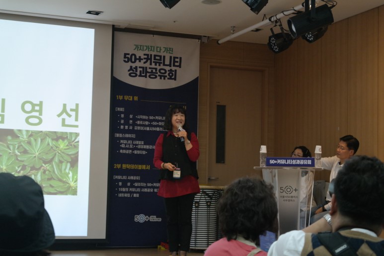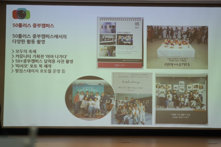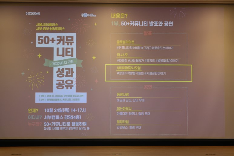 그들은 서울시50플러스 중부캠퍼스 커뮤니티로, 그들의 성과 공유 발표를 듣는 것만으로도 마음이 정말 따뜻해졌습니다.