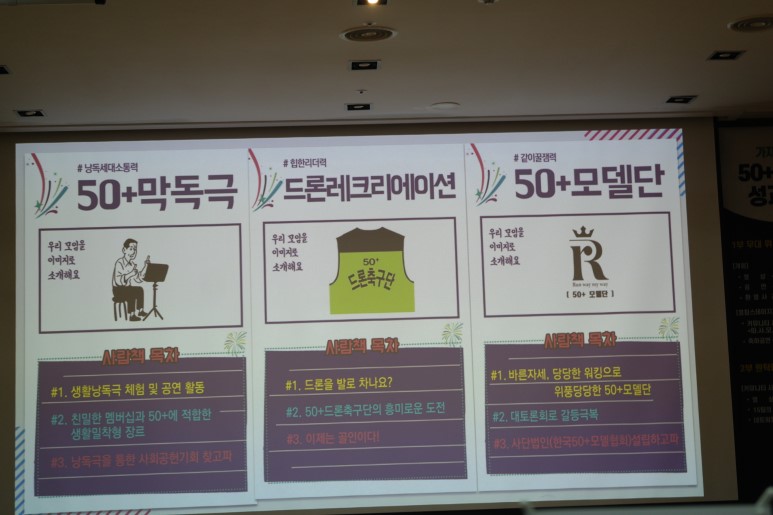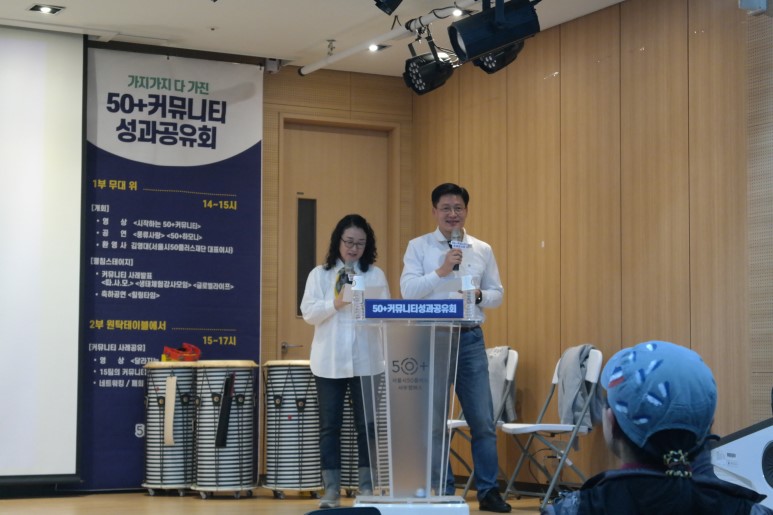 즐거운 공연으로 가득했던 1부의 시간이 끝난 후 2부는 서부캠퍼스, 남부캠퍼스, 중부캠퍼스 세 곳의 50+커뮤니티의 성과 사례를 공유하는 시간을 가졌습니다.
