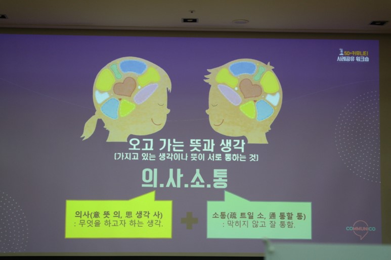 50+커뮤니티의 성과 공유회의 본격적인 워크숍 시간.