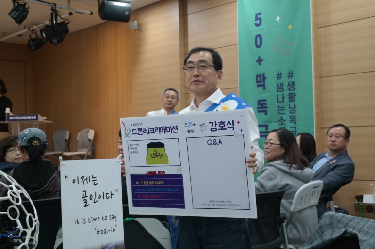 50+드론 커뮤니티의 “이제는 골인이다”란 글귀가 마치 우리 50+커뮤니티의 발전을 대변하는 말인 것 같았습니다.
