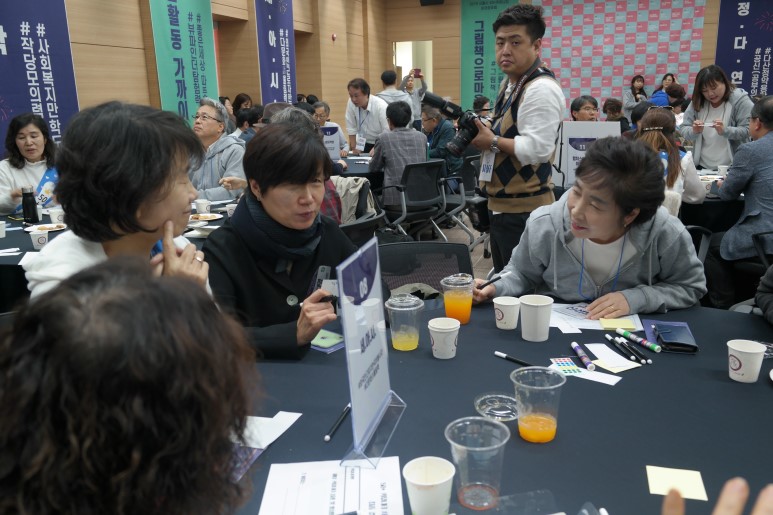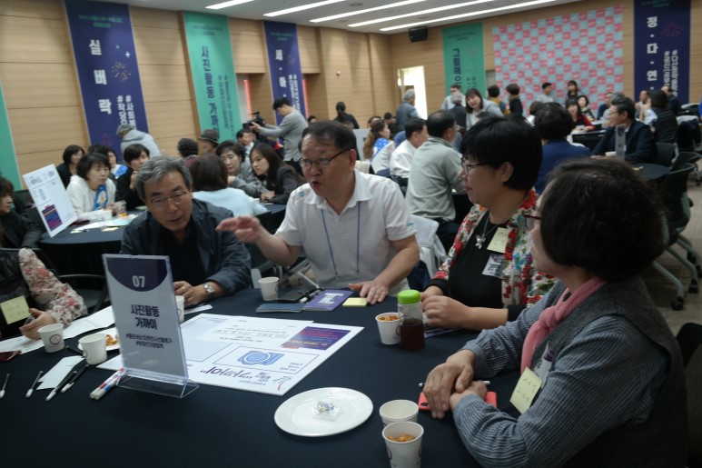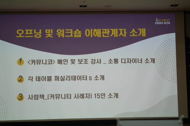 워크숍은 전문가 메인 소통 디자이너가 진행하면서 각 50+커뮤니티 테이블마다