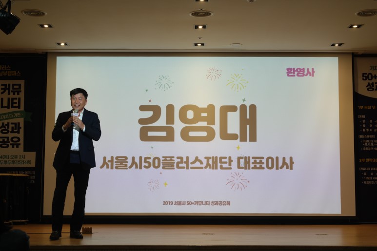 두 팀의 콜라보 공연까지 함께한 후 서울시50플러스재단의 김영대 대표이사의 환영사가 있었습니다.