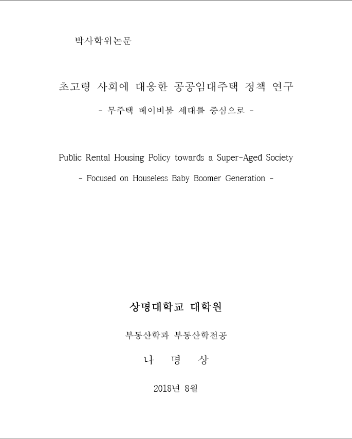유형: 논문(상명대학교 일반대학원(부동산학과) 박사학위논문)