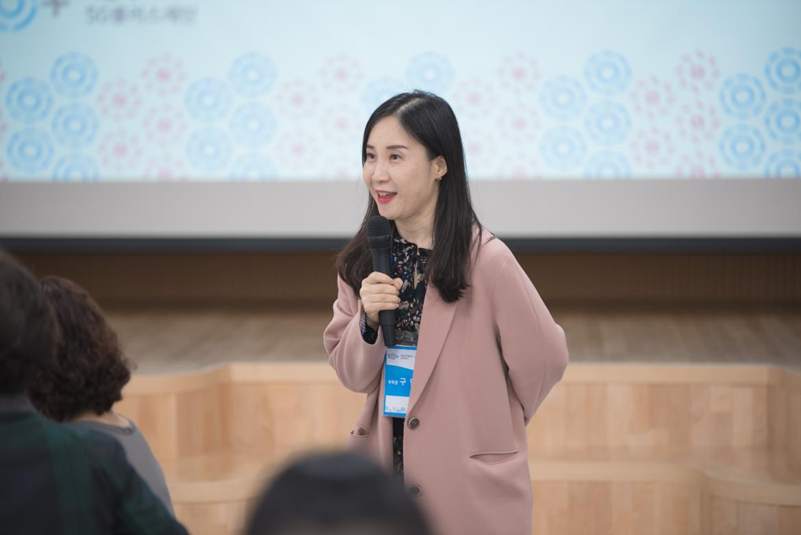 다음으로 마이크를 건네 받은 건, 인기 절정 구민정 부학장님입니다.