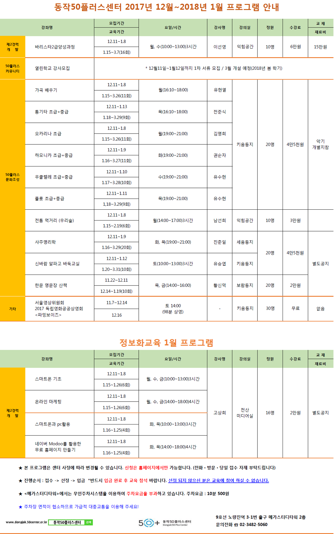[동작]동작50플러스센터 12월~1월 프로그램 안내