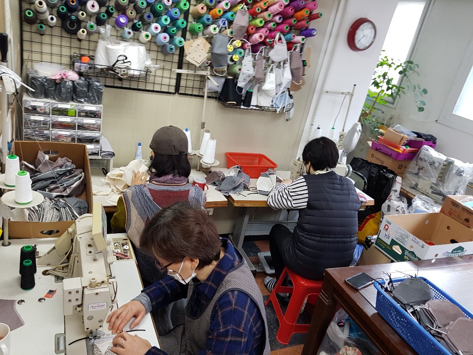 3월 9일부터 서대문구 '빵 만드는 사람들 공동체' 공방에서 허영숙, 김정순, 김미경, 백경애, 손남순, 박효순 선생님께서 천 마스크 1000개 제작을 목표로 열심히 일하고 계십니다.