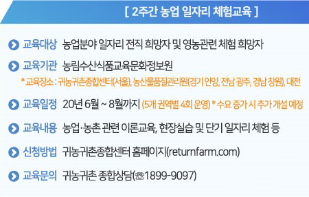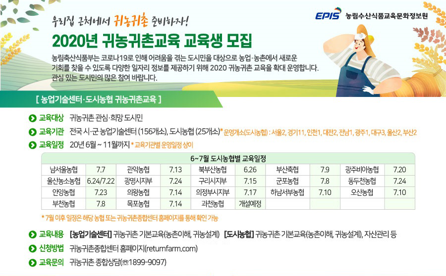 [농림축산식품부] 2020년 귀농귀촌교육 교육생 모집