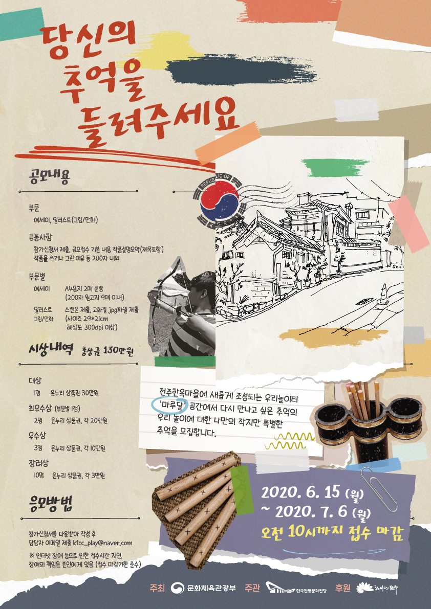 전주한옥마을 내 <전통놀이문화공간 조성사업> 에 따른 우리놀이터‘마루달’공간 스토리텔링 공모전을 진행합니다.