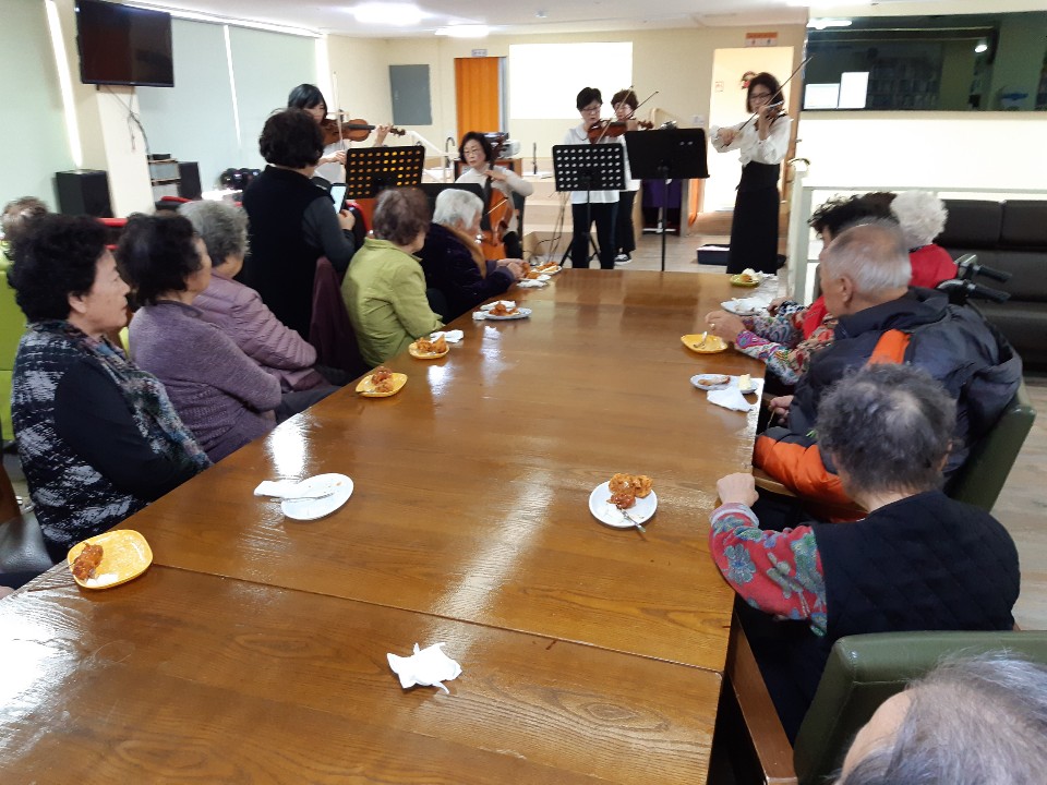<지난 해 구로구 종합사회복지관, 데이케어 센터에서 연주 봉사 모습>