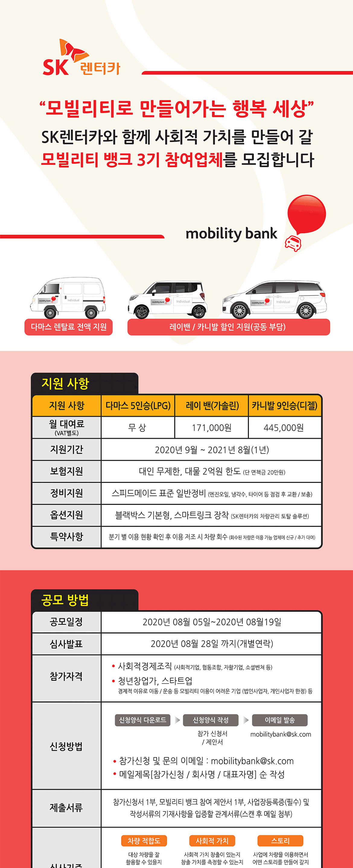 [SK 렌터카] 모빌리티 뱅크 3기 공모 안내(~8.19)