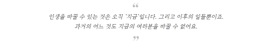 사람의 삶은 선택의 연속이다. 똑같은 24시간이 주어졌을 때 웃으면서 할 것인지, 투덜거리면서 할 것인지 그것은 본인의 선택이다.