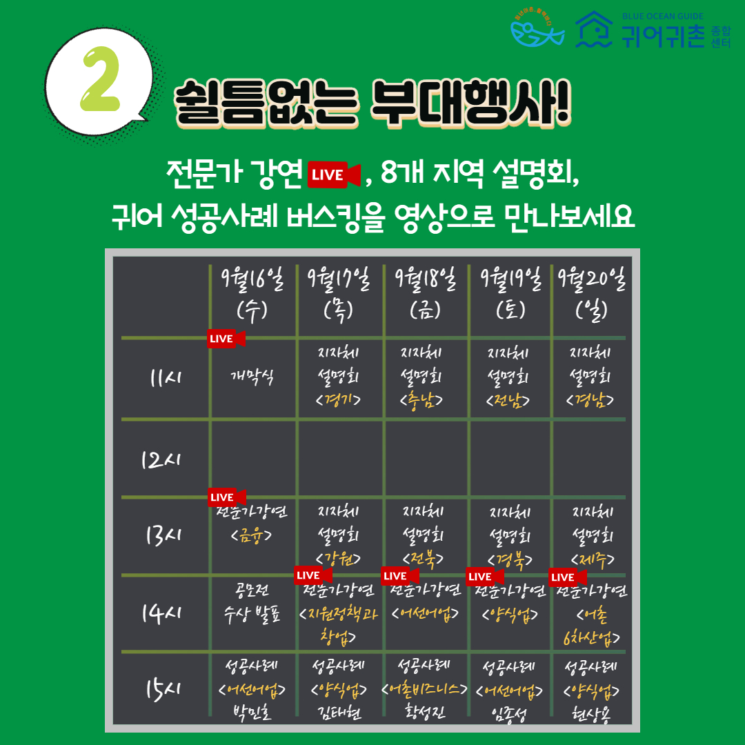 • 귀어·귀촌 희망자와 귀어·귀촌에 관심 있는 시민을 위한 온라인 박람회