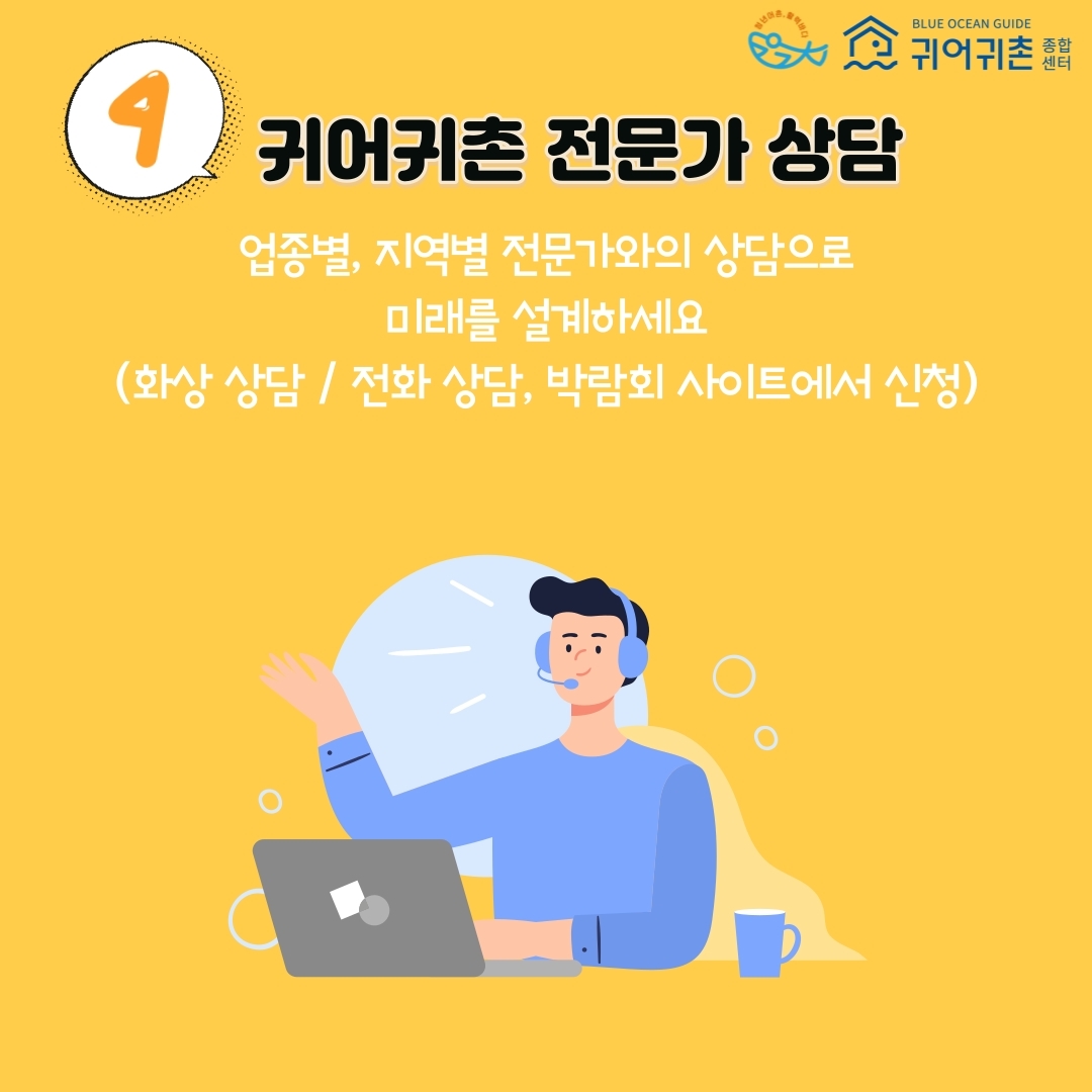내용 | (온라인) 귀어귀촌 화상 상담 등 (오프라인) 지역 귀어귀촌지원센터(8개소) 이동 상담소 운영