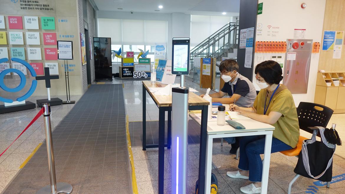 열 감지기를 통해 발열 체크를 하고 서부캠퍼스에 들어섰다.