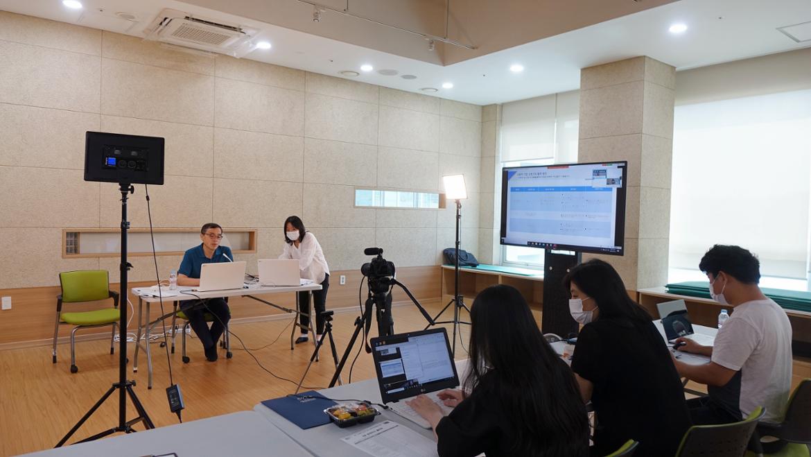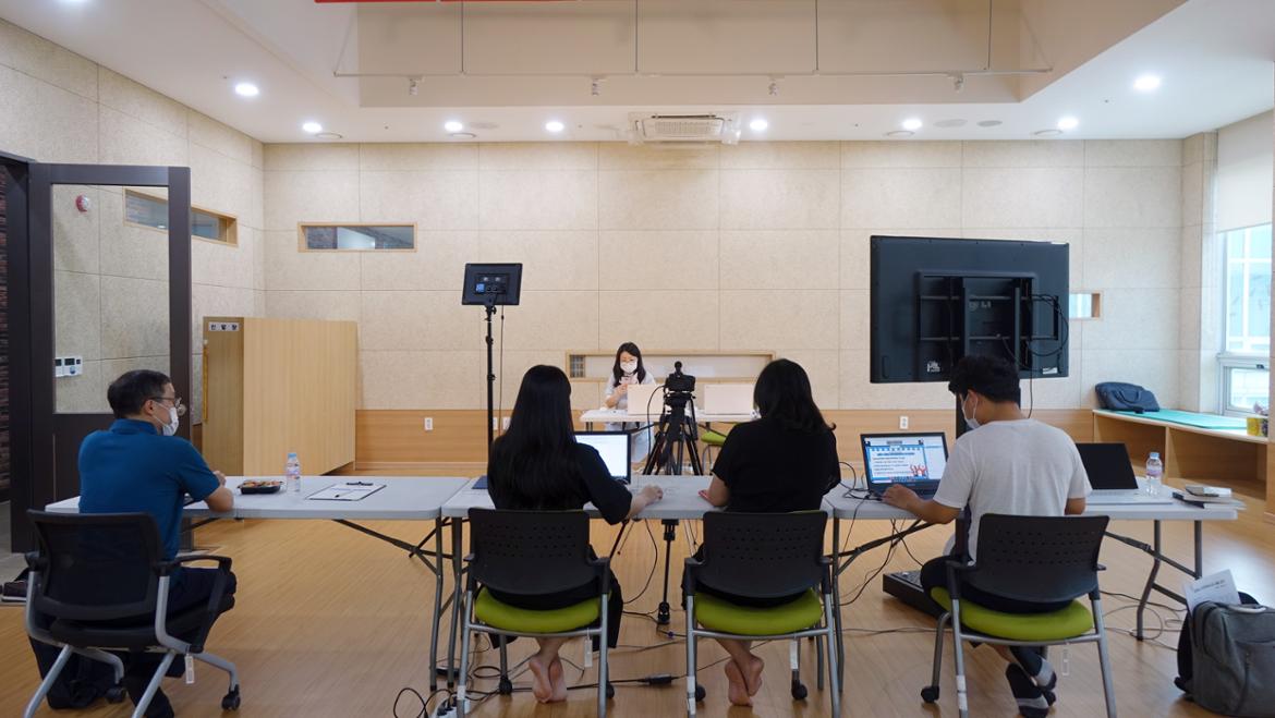 마지막 월례 회의 날, 취재를 위해 서부캠퍼스로 향했습니다. 코로나19 상황이 다시 긴박해지는 바람에 웹엑스를 이용한 온라인 회의로 바뀌어서 사례 발표자 한 분만 현장에 함께했어요. 열감지기를 통과하며 발열 체크를 하고 4층으로 올라가니 화상회의를 준비하는 손길이 분주하고 사뭇 긴장이 느껴지더군요.
