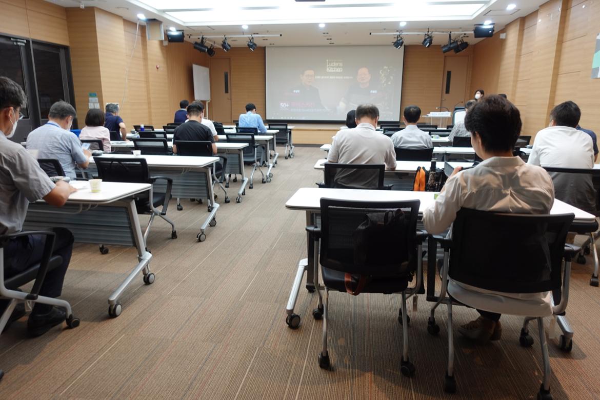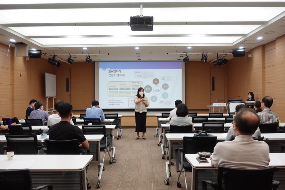 오후가 되자 1부에서 기업간담회에 참가한 관계자들이 퇴장한 후 두루두루 강당은 20여 명의 참여자들로 다시 채워졌다. 다시 안선진(서부캠퍼스 일자리팀장)님의 50+정책과 일자리사업에 대한 소개가 있었다.