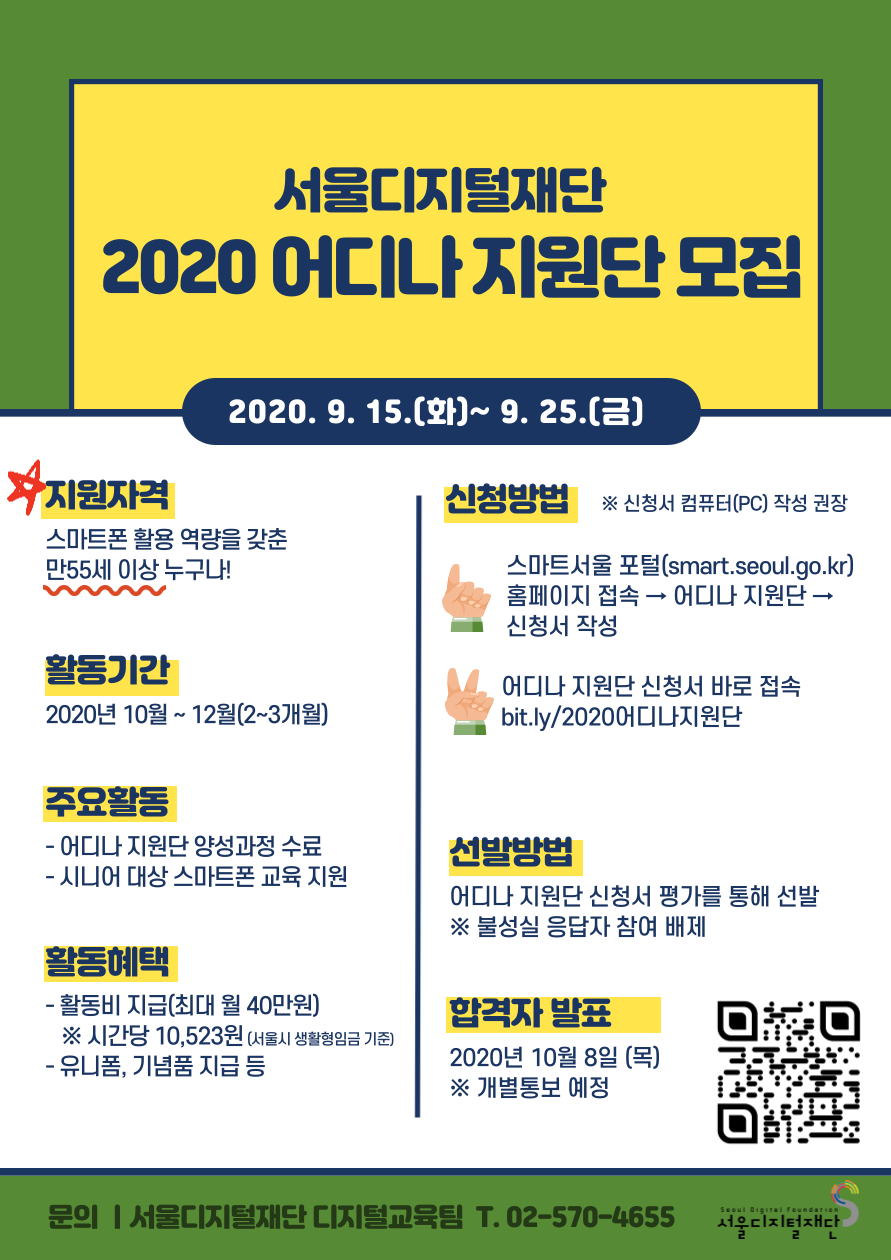 [서울디지털재단] 2020 어디나 지원단 모집(~9.25)