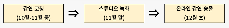 선발된 강연자는 온라인을 통해  강연 (스튜디오 녹화 형식)