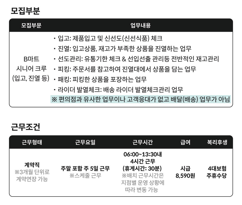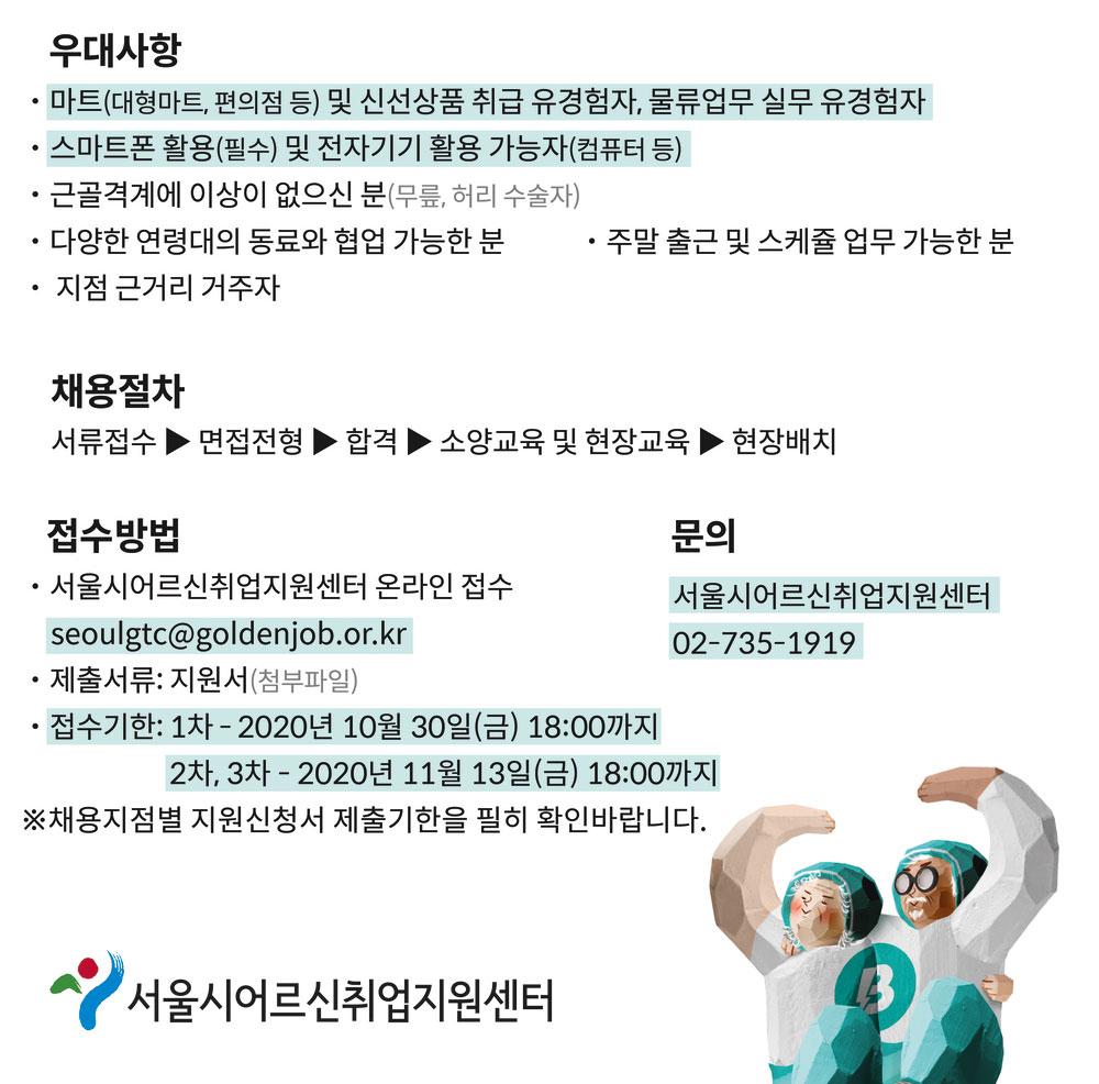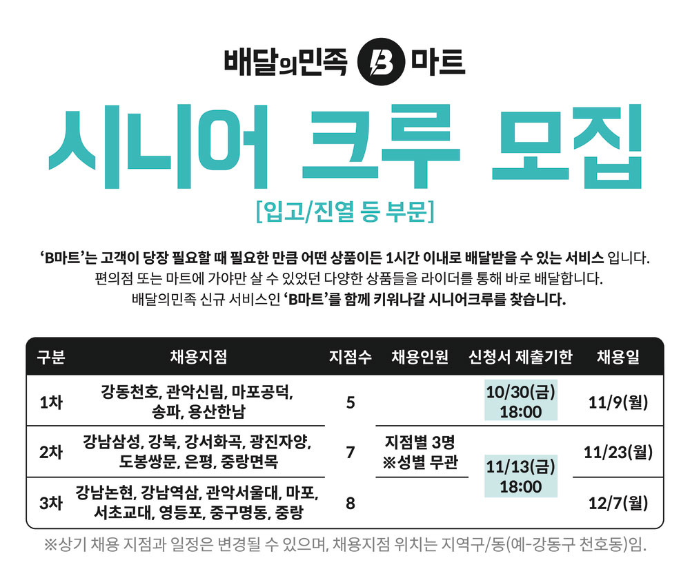 [서울시어르신취업지원센터] 배민B마트 채용공고(~11.13)