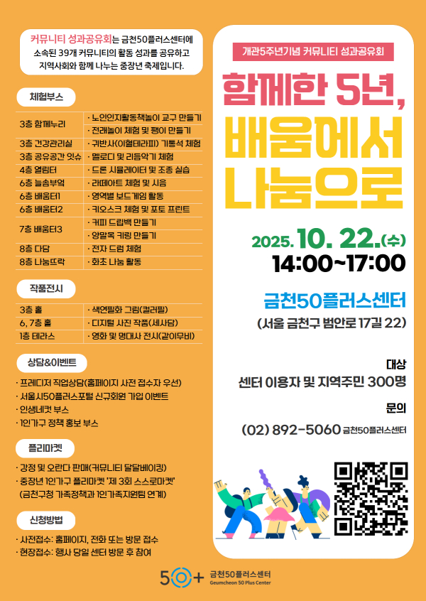 금천50플러스센터 개관 5주년 기념 커뮤니티 성과공유회 홍보물. 금천구 제공
