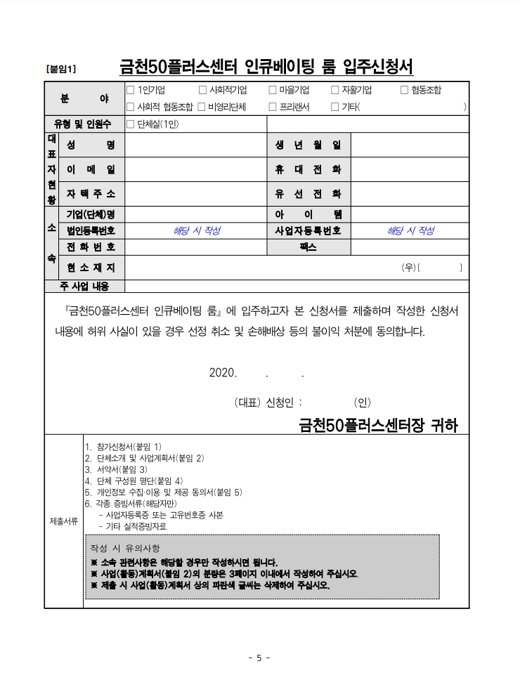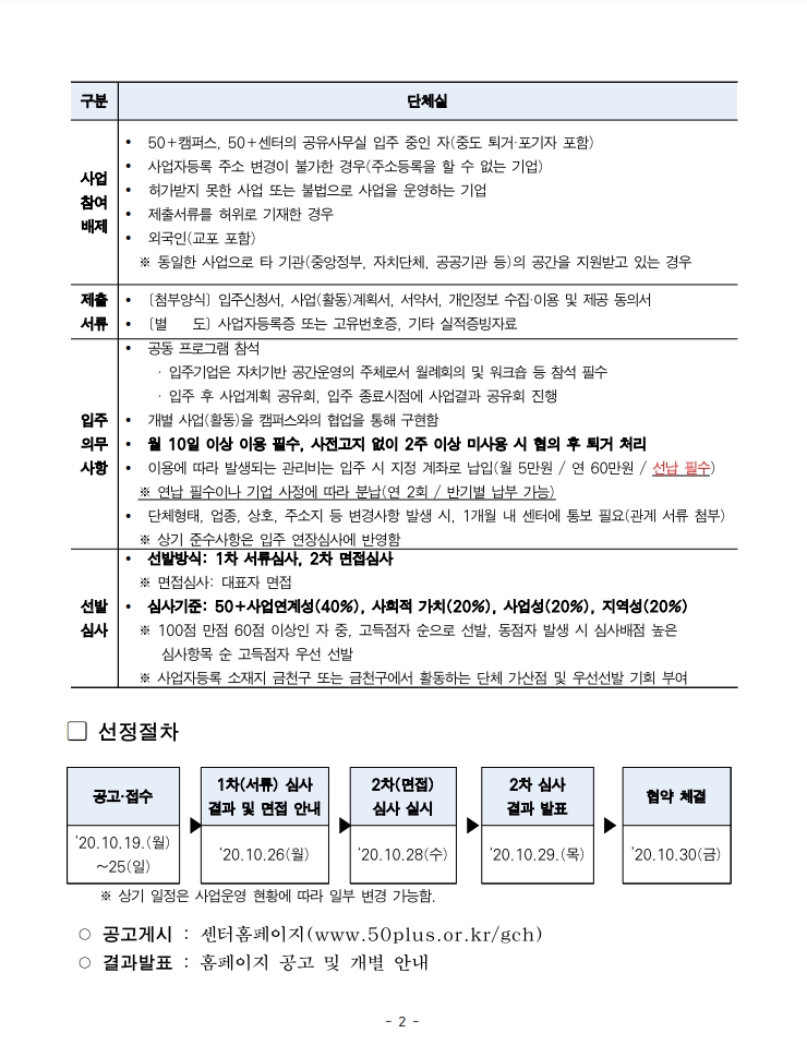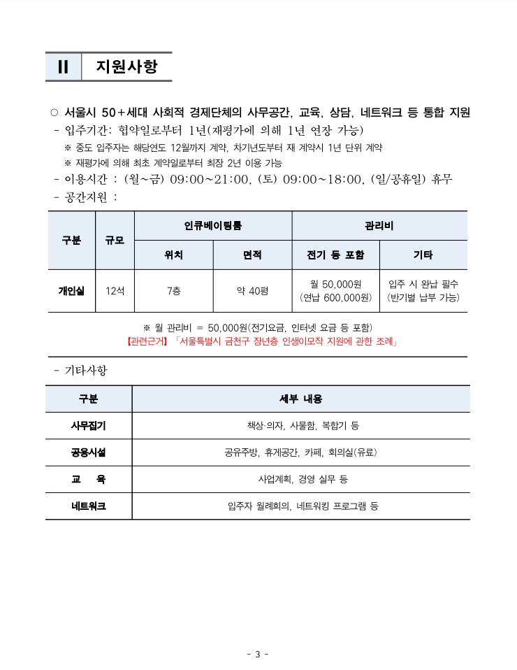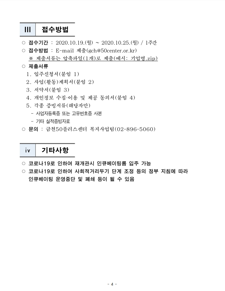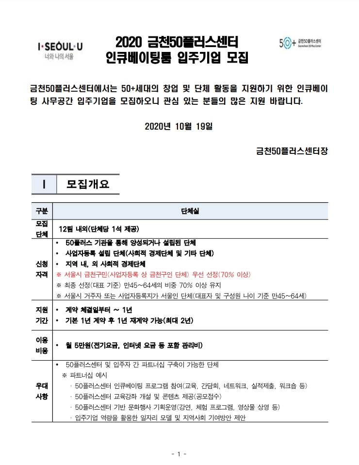 서울시 금천센터 | 2020 금천50플러스센터 인큐베이팅룸 입주기업 모집
