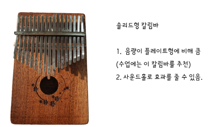칼림바 개별 준비(사전 구매신청 시, 현장구매 가능), 교재