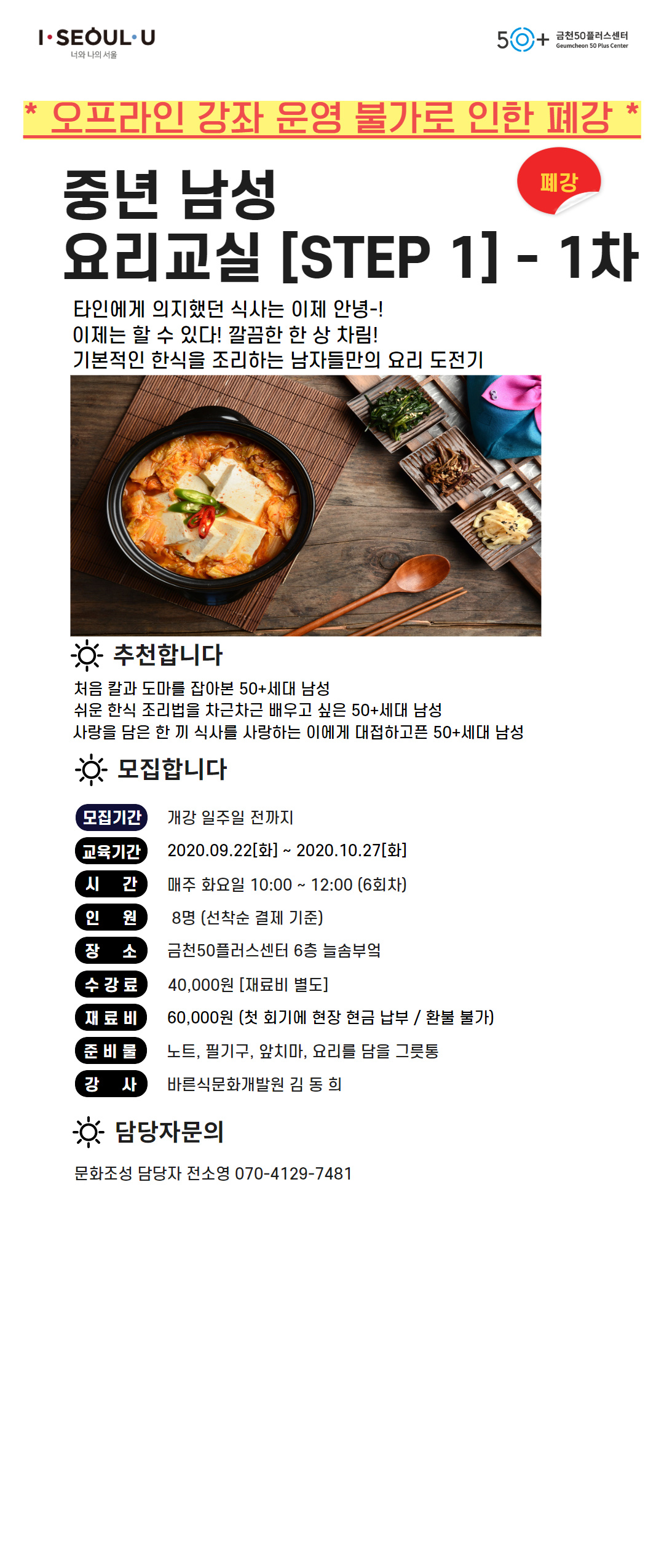 [문화조성]중년남성 요리교실 [STEP 1] <1차>(폐강)