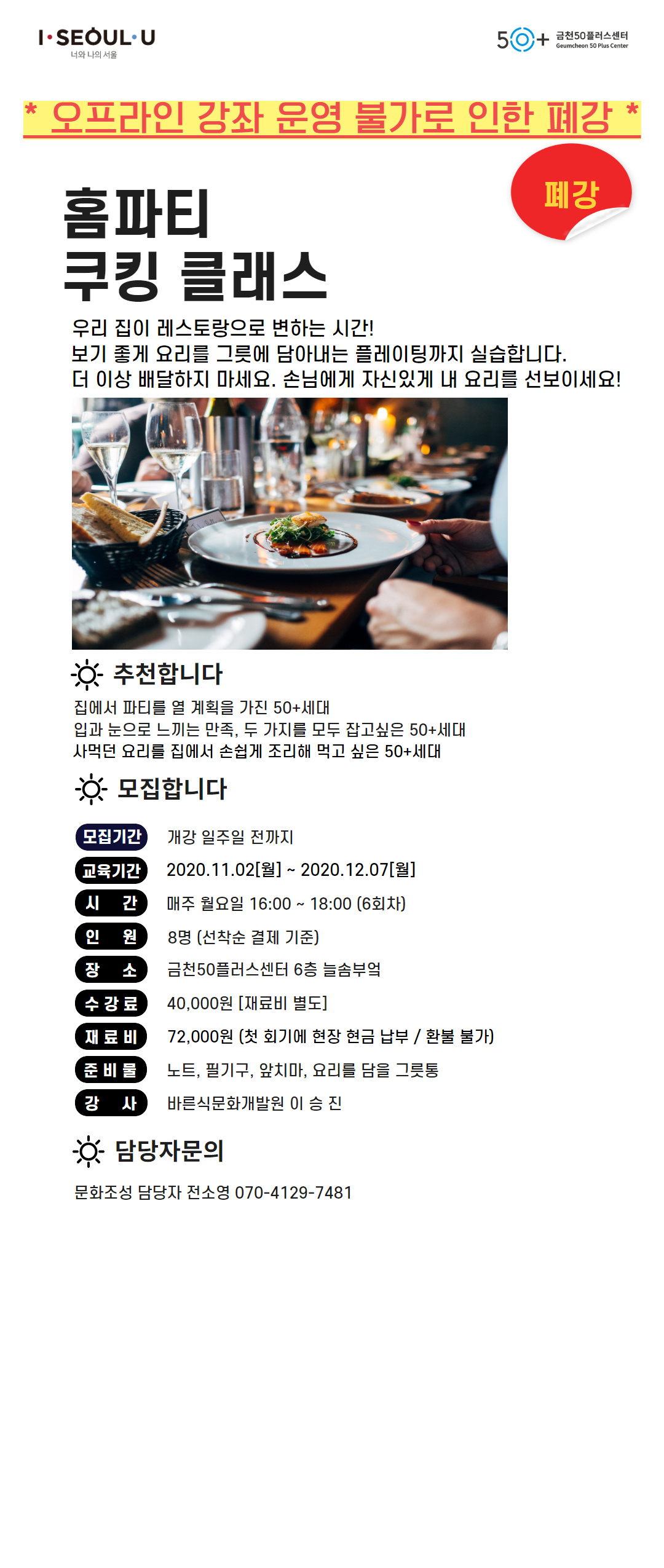 [문화조성]홈파티 쿠킹 클래스(폐강)