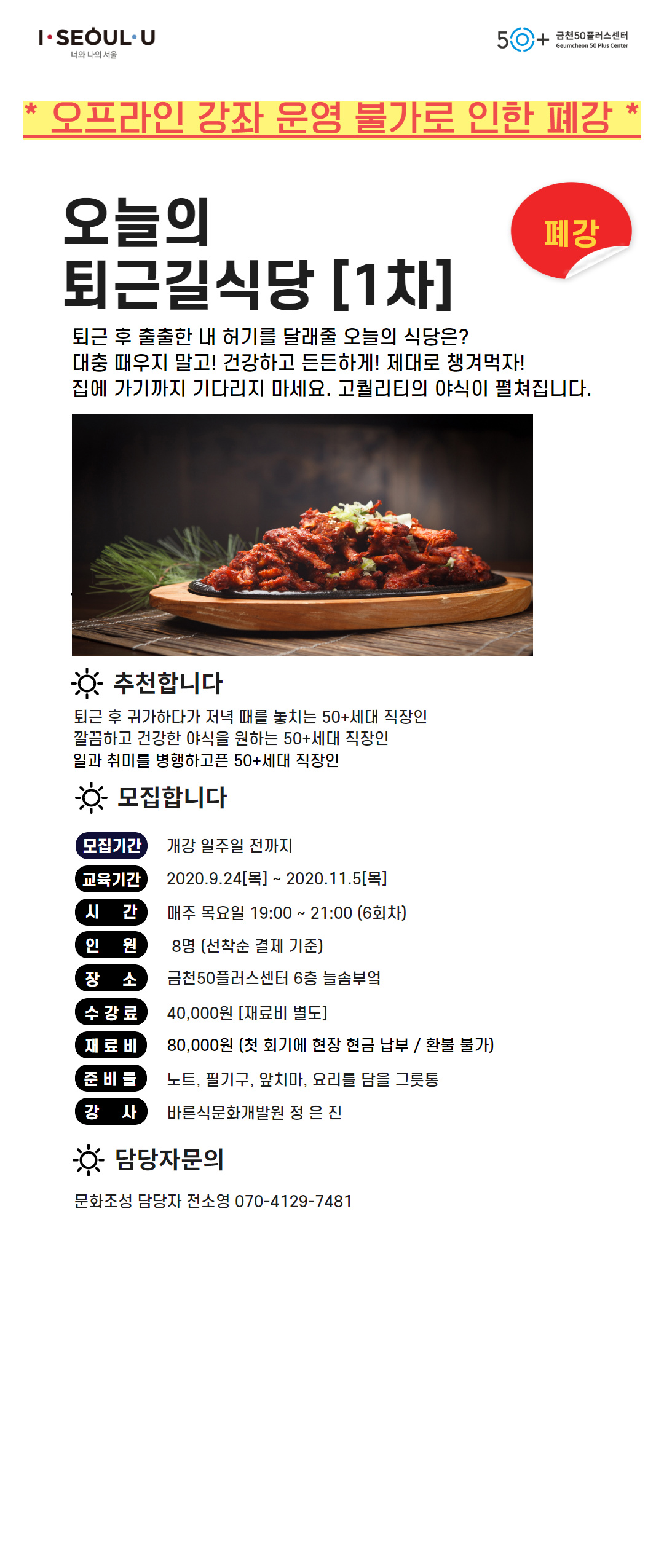 [문화조성]오늘의 퇴근길식당 <1차>(폐강)