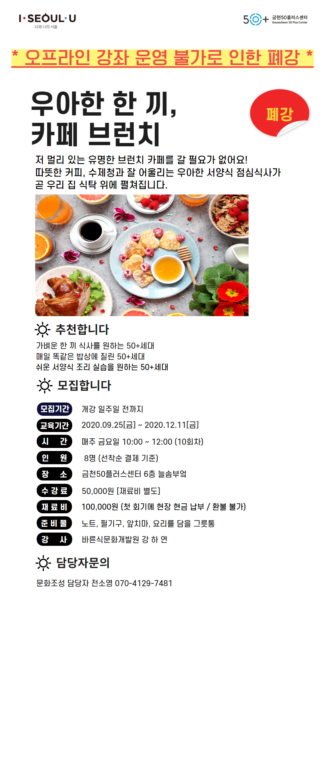 [문화조성]우아한 한 끼, 카페 브런치(폐강)