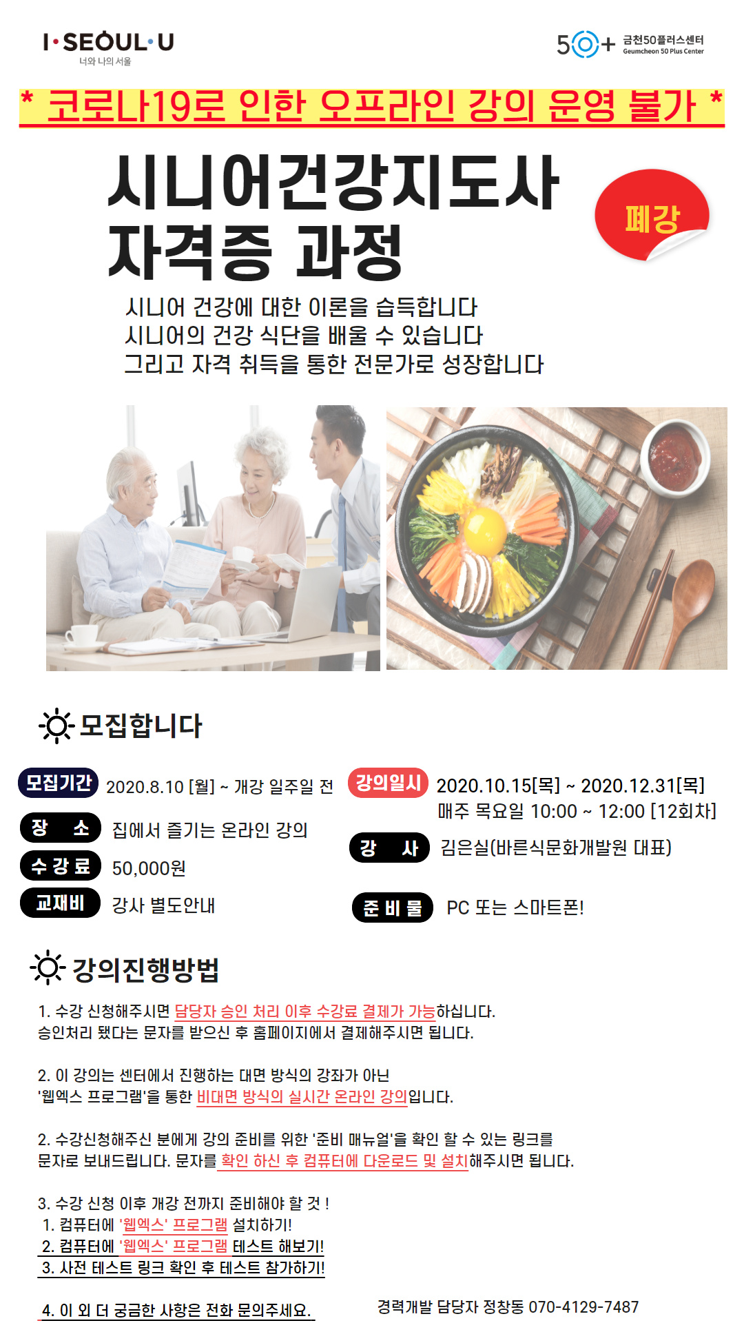 [경력개발]시니어건강지도사 자격증 과정(폐강)