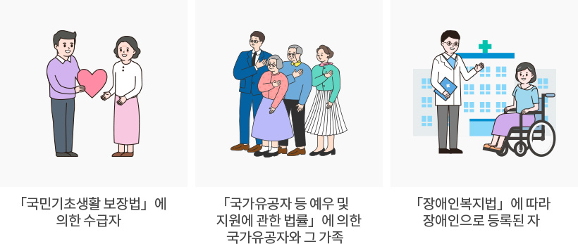· 「국가유공자 등 예우 및 지원에 관한 법률」에 의한 국가유공자와 그 가족