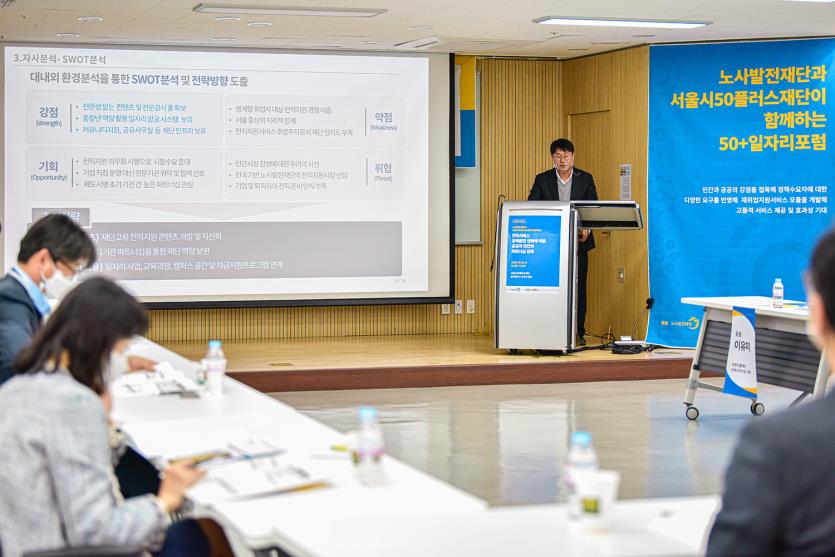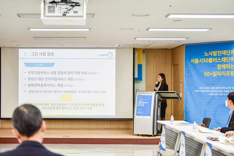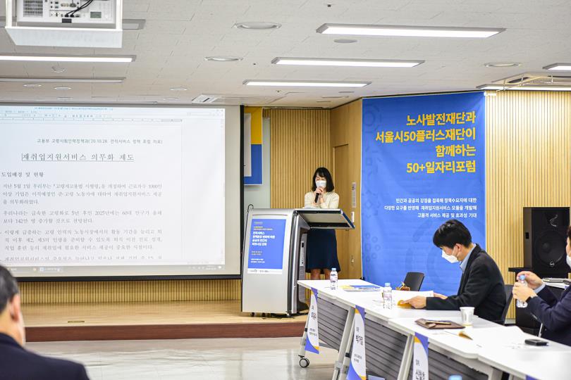 지난 10월, 서울시50플러스 중부캠퍼스에서는 노사발전재단과 서울시50플러스 재단이 전직서비스 정책 환경에 함께 대응하기 위한 정책 포럼이 개최되었다.
