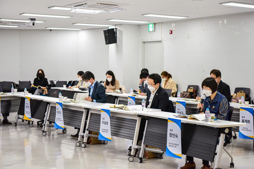 주제 발표가 끝나고 좌장인 한국기술대학교 테크노인력개발 전문대학원 유길상 명예교수의 인사말로 오늘의 주제인 전직서비스 정책 환경 변화에 따른 공공과 민간의 파트너십 강화를 위한 종합 토론을 시작했다.