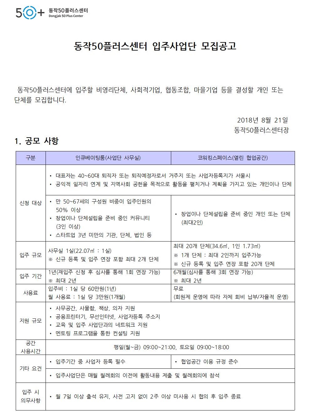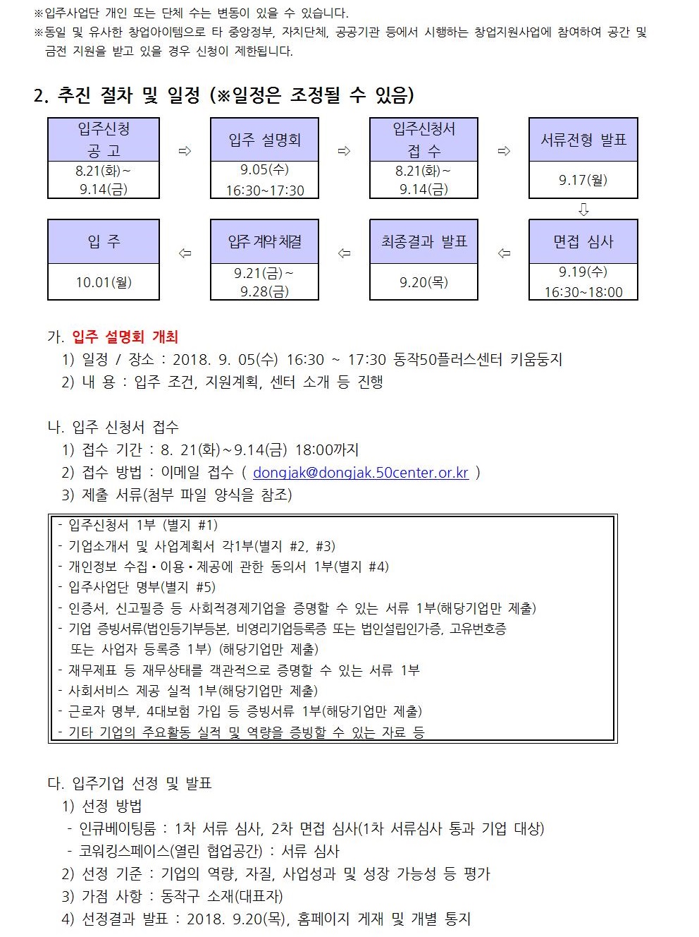 [동작]2018년 하반기 입주사업단 모집공고