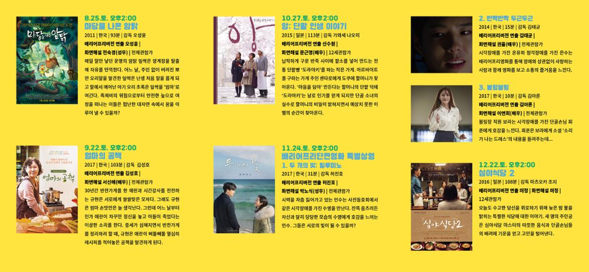 2018년 하반기 「토요 배리어프리 영화관」 운영 안내