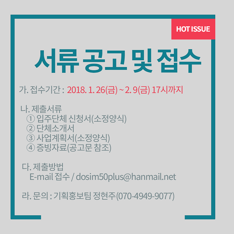 . 모집공고 및 접수 : 2018. 01. 26() ~ 02. 09()