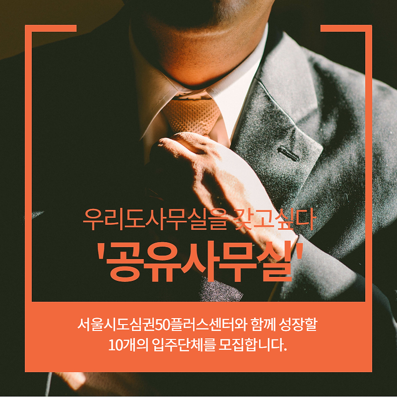 도심권50플러스센터와 함께 성장할 10개의 입주단체를 모집합니다.