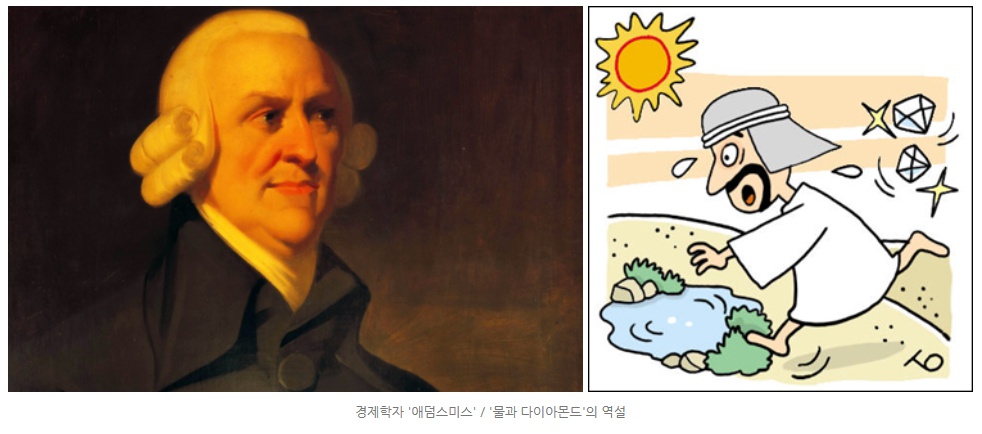 중국산 굴비와 영광굴비, 이태리산 명품가방과 동대문 짝퉁가방. 맛도 생긴 것도 전문가가 구분하지 못할 정도라면 (그럼 된 거 아냐?) 뭐가 문제일까? ‘교환가치와 사용가치가 다르다’는 아담 스미스의 물과 다이아몬드의 역설을 이용한 센스 만점 설명에 강연을 들으러 온 사람들이 모두 고개를 끄덕였다. 물은 쓰임새로 보면 사용가치는 크지만, 교환가치는 거의 공짜일 정도로 작다. 반면 값비싼 다이아몬드는 교환 가치는 크지만, 사용가치는 작다. 즉, 수익창출은 교환가치로 이루어지는 경제활동이고, 살림살이는 사용가치로 이루어진다는 것이다. 따라서 이 둘을 구별하지 않고 헷갈리면 비효율이 발생한다.