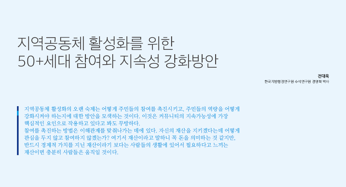 지역공동체 활성화를 위한 50+세대 참여와 지속성 강화방안
