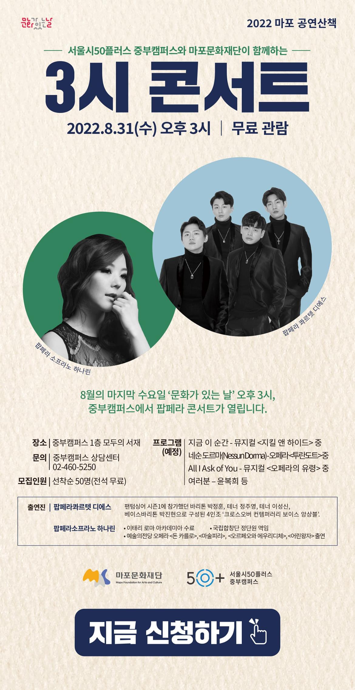 [중부][무료공연] 중부캠퍼스와 마포문화재단이 함께하는 「3시 콘서트」 참가 신청