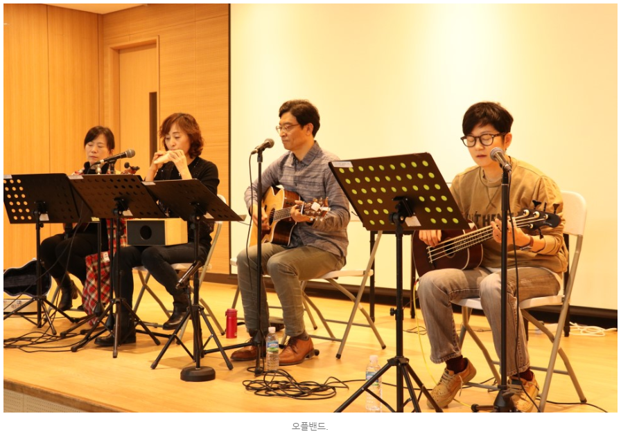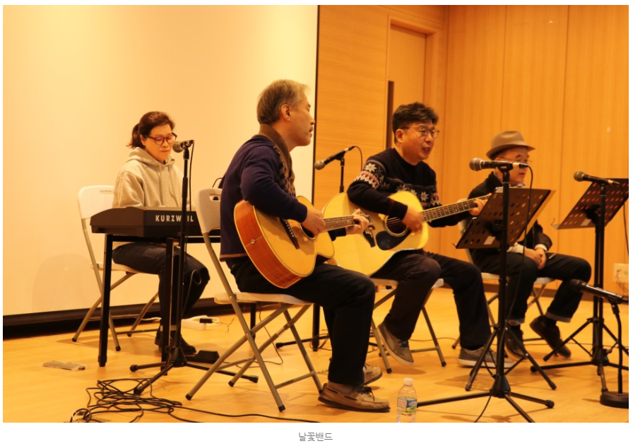 이어서 날꽃뺀드의 어쿠스틱 공연. ‘나 그대에게 모두 드리리. Take Me home Country Road’ 같은 추억의 노래들을 또 다 함께 열창.
