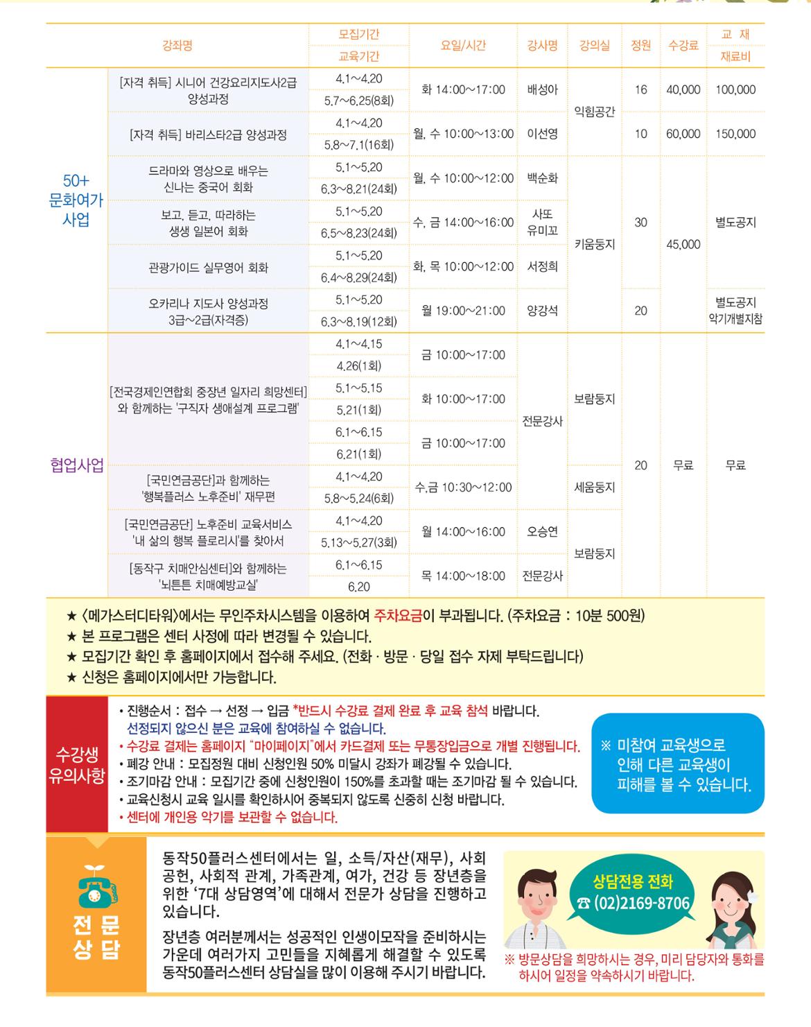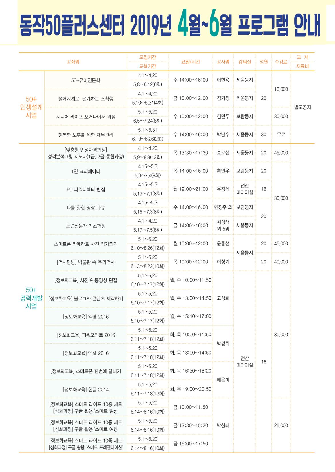 #동작50플러스센터#4월#5월#6월#프로그램#안내