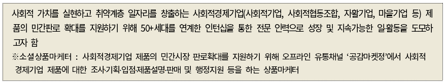 사회적경제기업 제품의 오프라인 판매촉진을 위한 판로지원