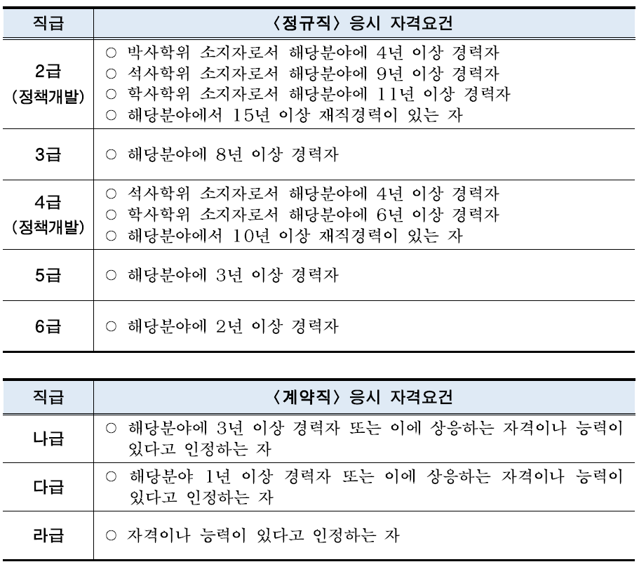 (2급~3급 : 직무관련 필기시험, 4급~6급‧계약직 : 인적성 검사)