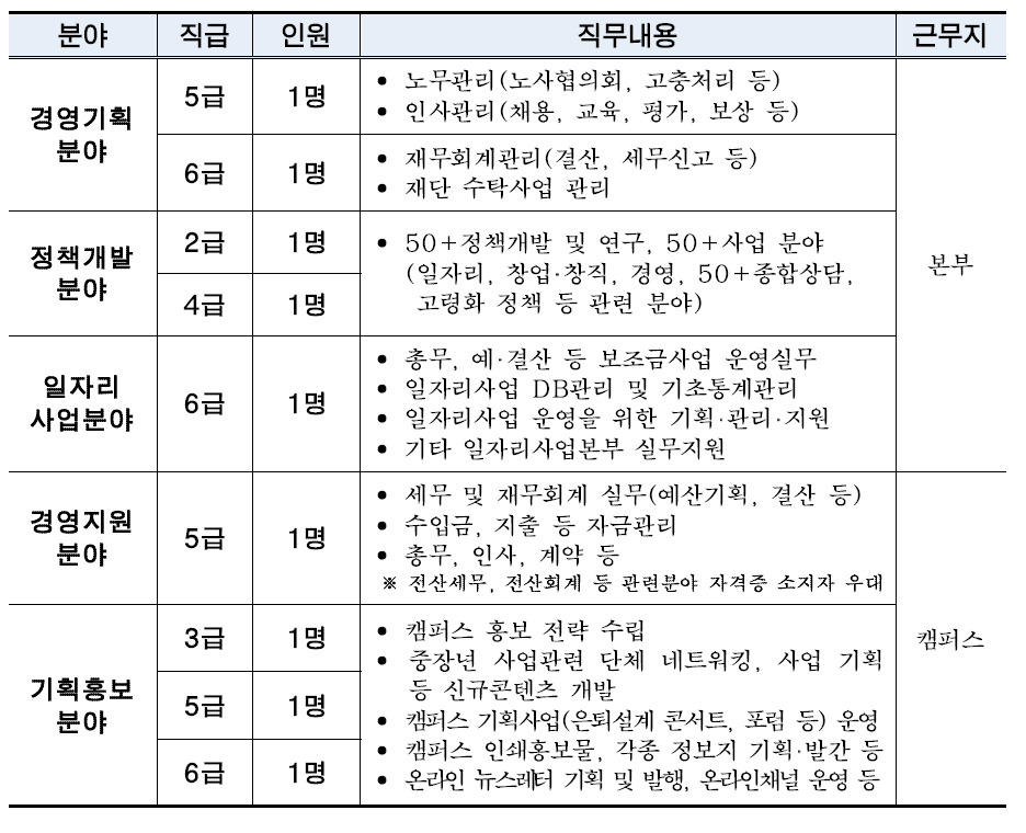 재단법인 서울특별시 50플러스 재단 직원 채용 공고