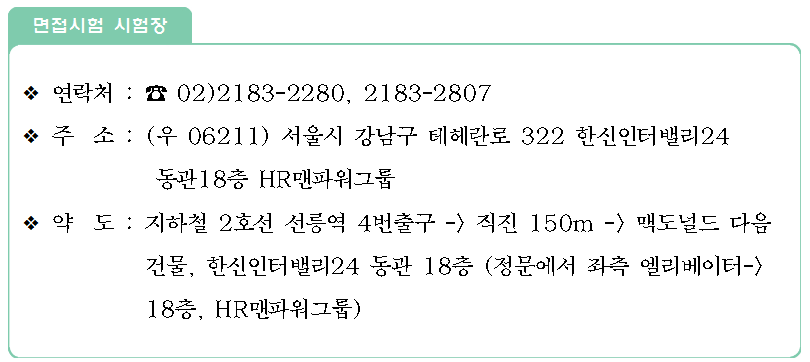 ○ 시험장소 : HR맨파워그룹(채용대행사) 면접심사 시험장